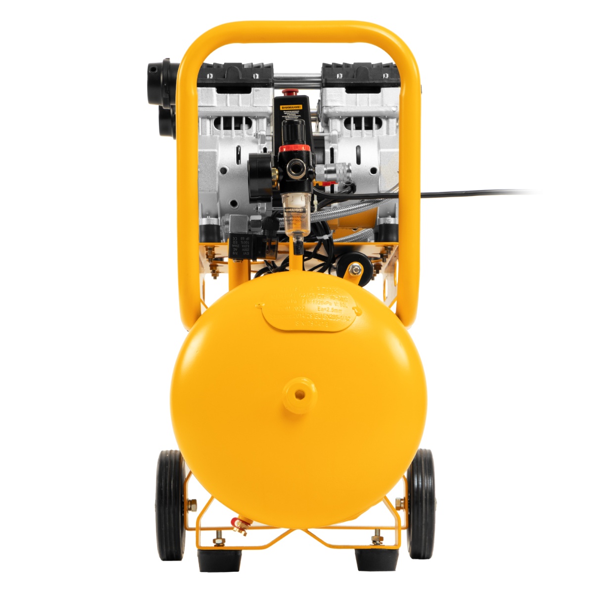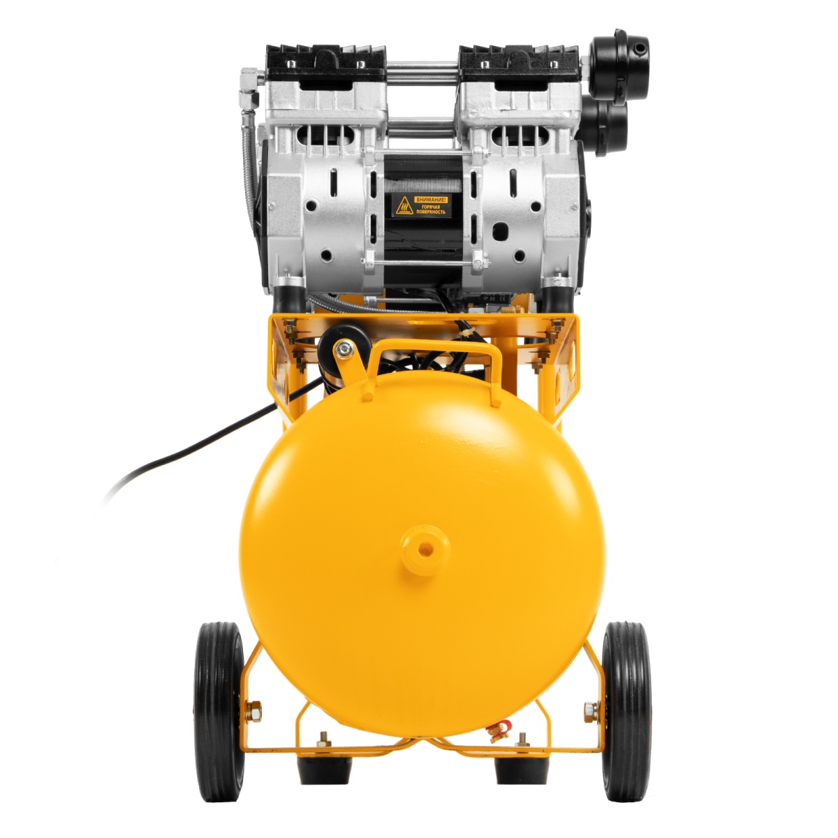 Безмасляный малошумный компрессор Denzel DLS 1500/50 58027 мощностью 1500 (2 х 750) Вт, объемом ресивера 50 л и производительностью 260 л/мин предназначен для обеспечения пневмоинструмента сжатым воздухом, подаваемым под давлением до 8 бар. Позволяет подключить пневматический заклепочник, дрель и т. д. Оптимален для работы с краскопультом и для продувки электронных компонентов, т. к. в сжатом воздухе отсутствуют частицы масла. Компрессор пригодится в мастерской, гараже, на строительной площадке.ПреимуществаНизкий уровень шума — работа компрессора не вызывает дискомфорт, его можно использовать в помещении или на дачном участке.Высокий ресурс — цилиндры с антифрикционным покрытием обладают повышенной устойчивостью к износу.Термозащита — в случае превышения максимально допустимой температуры двигатель останавливается для предотвращения выхода из строя.Автономность — реле давления обеспечивает автоматическое отключение двигателя по достижении максимального рабочего давления и его запуск после снижения давления до минимального.Регулятор давления на выходе — можно выбрать оптимальный режим подачи воздуха в соответствии с характеристиками пневмоинструмента.Безопасная работа — клапан сброса избыточного давления предотвращает возникновение аварийных ситуаций.Высокое качество очистки воздуха — фильтры надежно задерживают посторонние частицы, а влагоотделитель препятствует попаданию конденсата в пневмомагистраль.Контроль давления в ресивере и на выходной магистрали — компрессор оборудован двумя манометрами.Простая подготовка к работе — благодаря быстросъемному выходному коннектору подключение пневмоинструмента занимает несколько секунд.Быстрое удаление конденсата — сливной клапан легко откручивается без использования инструмента.Снижение уровня вибраций — резиновые опоры гасят колебания, возникающие во время работы.Мобильность — компрессор оборудован ручкой и 2 колесами для удобного перемещения.Гарантия 3 года — надежность компрессора подтверждена производителем.