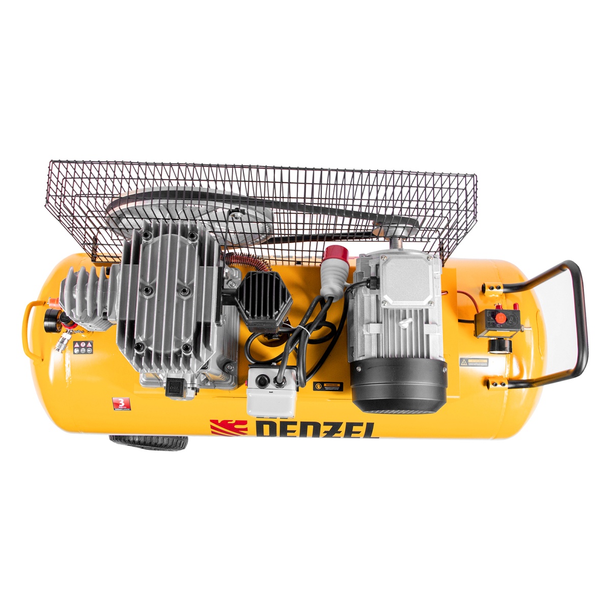 Воздушный компрессор с ременным приводом Denzel BCI4000-T/200 58124 мощностью 4,0 кВт и производительностью 690 л/мин, с ресивером объемом 200 л, используется для подачи сжатого воздуха к пневмоинструменту. Благодаря увеличенному ресиверу к компрессору можно подключать оборудование с большим потреблением сжатого воздуха — пневмодрель, пневмошуруповерт, пневмоножницы по металлу. Высокая производительность позволяет использовать компрессор на строительной площадке и в автомастерской.ПреимуществаКачественные комплектующие — чугунный коленвал и цилиндры, металлические корпусы и штуцеры фильтров повышают срок службы компрессора.Долговечность — медная обмотка обеспечивает длительную стабильную работу двигателя даже при высоких нагрузках, а стальные стенки ресивера толщиной 3,7 мм устойчивы к повреждениям и коррозии.Термозащита — при превышении допустимой температуры двигатель отключается, что предотвращает его поломку.Защита по току — функция аварийной остановки при превышении пороговых значений силы тока продлевает срок службы двигателя.Стабильная мощность — фильтры с бумажными картриджами обеспечивают свободное прохождение воздушного потока.Защита от пыли — резиновые уплотнители на фильтрах не допускают подсосов неочищенного воздуха.Эффективное охлаждение — оребренные трубы воздушной магистрали улучшают теплоотвод.Высокое качество сжатого воздуха — благодаря фильтру-влагоотделителю конденсат не попадает в пневмолинию.Удобный контроль работы — компрессор оснащен двумя манометрами для отслеживания давления в ресивере и в пневмолинии.Комфортная транспортировка — компрессор можно свободно перемещать по рабочей площадке благодаря удобной П-образной ручки и 4 колесам.Подтвержденное качество — на компрессор распространяется расширенная 3-летняя гарантия.