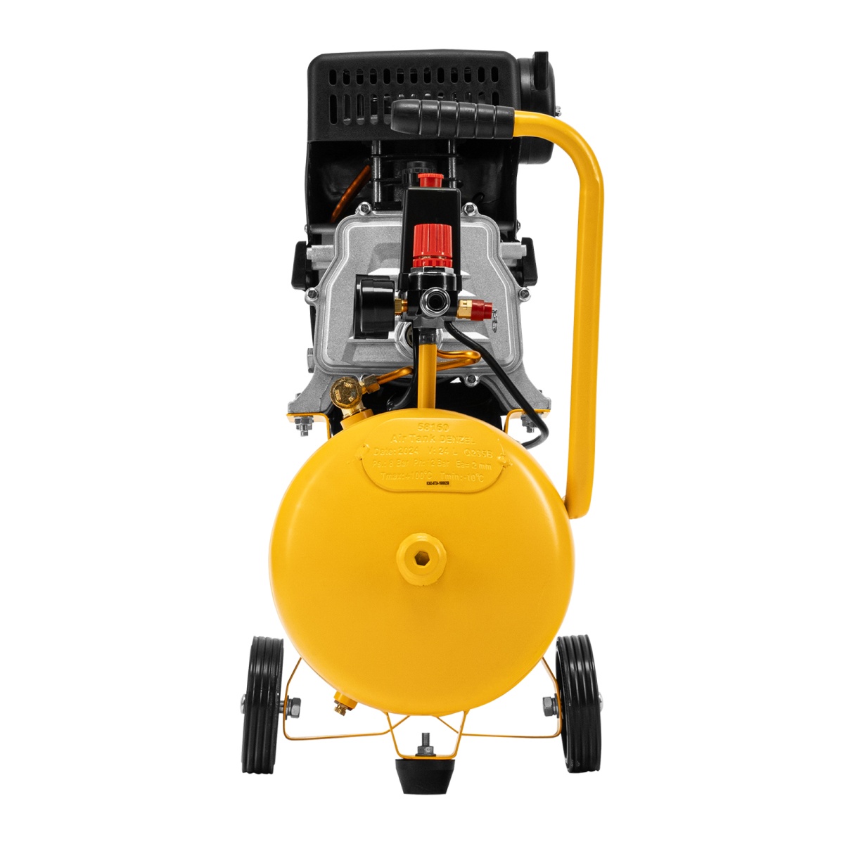 Воздушный компрессор с прямым приводом Denzel DC1500/24 58160 мощностью 1,5 кВт и производительностью на входе 220 л/мин, с объемом ресивера 24 л обеспечивает подачу сжатого воздуха к пневмоинструменту — пневмогайковерту, пневмошлифмашине, пневмодрели. Эффективная система смазки, снижающая нагрузку на двигатель, позволяет использовать компрессор для долговременных работ. Поэтому он будет полезен не только в загородном доме, но и в мастерской или гараже.ПреимуществаПрочная конструкция — цилиндр и коленвал выполнены из чугуна, ресивер изготовлен из стальных листов толщиной 2,5 мм и имеет прочные сварные швыНадежность — медная обмотка двигателя защищена от оплавления, поскольку система защиты останавливает работу в случае перегрузки по току.Термозащита — двигатель прослужит долго, т. к. при превышении допустимой температуры он автоматически отключается.Защита от утечки масла — поверхности картера, прошедшие дополнительную механическую обработку и шлифовку, плотно прилегают друг к другу.Улучшенное охлаждение сжатого воздуха — трубки воздушной магистрали снабжены металлическими ребрами.Эффективное очищение воздушного потока — бумажный картридж фильтра обладает хорошей пропускной способностью, а уплотнитель исключает подсос неочищенного воздуха.Легкая подготовка к работе — для подключения пневмоинструмента предусмотрен быстросъемный коннектор Euro (Rapid).Контроль рабочих параметров — давление в ресивере и выходной магистрали легко отслеживать благодаря 2 манометрам.Быстрый слив конденсата — для откручивания пробки с подпальцевыми упорами не требуется специальный инструмент.Удобное перемещение по рабочей площадке — компрессор оснащен ручкой и колесами.Подтвержденное качество — гарантия на заводской брак действует 3 года.