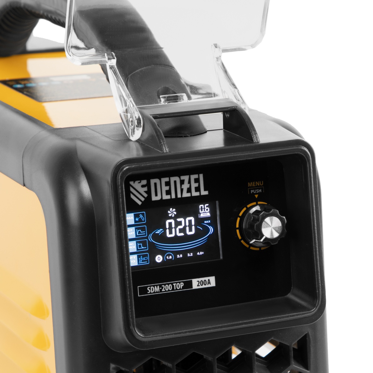 Предназначен для сварки штучными электродами диаметром до 5 мм изделий из низкоуглеродистых сталей в режиме MMA, а также аргонодуговой сварки неплавящимся электродом TIG LIFT (горелка приобретается отдельно). Аппарат эффективно работает даже при нестабильном напряжении. Устройство предназначено для использования в быту и профессиональной сфере.Основное достоинство линейки Denzel SDM — синергетическое управление, значительно облегчающее подбор оптимальных параметров сварки. Аппарат дает возможность указать толщину свариваемого металла, после чего автоматически подбирает оптимальный сварочный ток и диаметр электрода. И наоборот: достаточно установить требуемое значение сварочного тока и на дисплее отобразится минимальная рекомендованная толщина свариваемых деталей, а также диаметр электрода. Аппарат эффективно работает даже при нестабильном напряжении, предназначен для использования в профессиональной сфере и в быту.