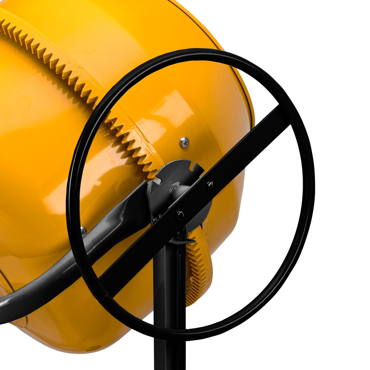 - Защита от перегрева — если неопытный пользователь перегрузит барабан, датчик термозащиты незамедлительно отключит питание, это позволит предотвратить повреждение обмотки двигателя.Долговечность — барабан выполнен из стальных листов увеличенной толщины (верх 1,5 мм / низ 2 мм) и покрыт порошковой краской для защиты от коррозии.Высокая металлоемкость конструкции — за счет применения усиленных узлов и элементов бетоносмеситель выдерживает повышенные нагрузки.Безопасная эксплуатация — ведущая шестерня закрыта широким защитным кожухом, предотвращающим затягивание посторонних предметов в привод.Прочность — шестерня и венец сделаны из чугуна, в конструкции венца нет ослабляющих сквозных отверстий, т.к. он крепится к барабану через проушины, вынесенные за его тело.Надежность и высокий ресурс — втулка, передающая вращение от вала непосредственно ведомому шкиву, произведена из прочной стали.Фиксация угла наклона барабана — в конструкции бетоносмесителя предусмотрена педаль, позволяющая фиксировать бак в нужном положении и дозировать выгрузку готовой смеси.Возможность экстренного выключения — при возникновении внештатной ситуации достаточно просто «стукнуть» по большой наружной кнопке, и работа двигателя моментально прекратится.II класс защиты от поражения электрическим током — устройство имеет двойную изоляцию токопроводящих элементов, что подтверждено сертификатом.Сниженный уровень шума 86 дБ — толщина венца увеличена, поэтому бетоносмеситель работает тише по сравнению с классическими моделями, также уменьшается уровень вибраций.Защита от коррозии — бак окрашен стойкой порошковой краской, она не стирается со временем и долго сохраняет первозданный вид.Простое обслуживание — узел крепления оси барабана легко разбирается, это значительно упрощает замену подшипников.Удобная транспортировка — колеса упрощают перемещение бетоносмесителя по строительной площадке.Степень защиты внутренних узлов IP44 — двигатель закрыт корпусом, кнопки управления — пластиковой крышкой, не допускающей попадания строительной пыли и влаги.Гарантия 3 года — высокое качество бетоносмесителя подтверждено производителем.