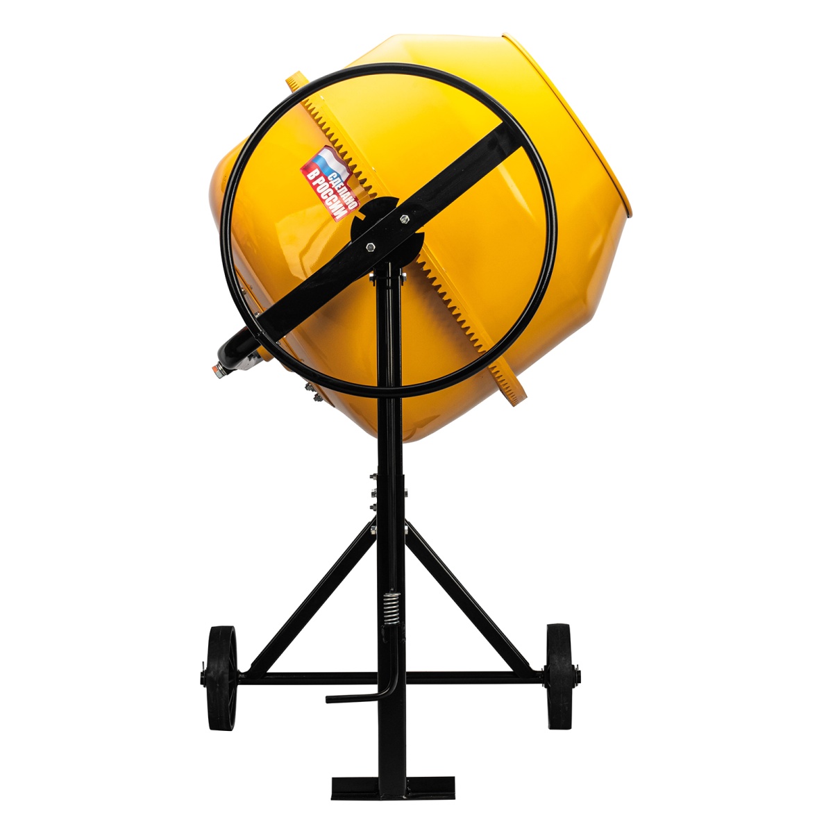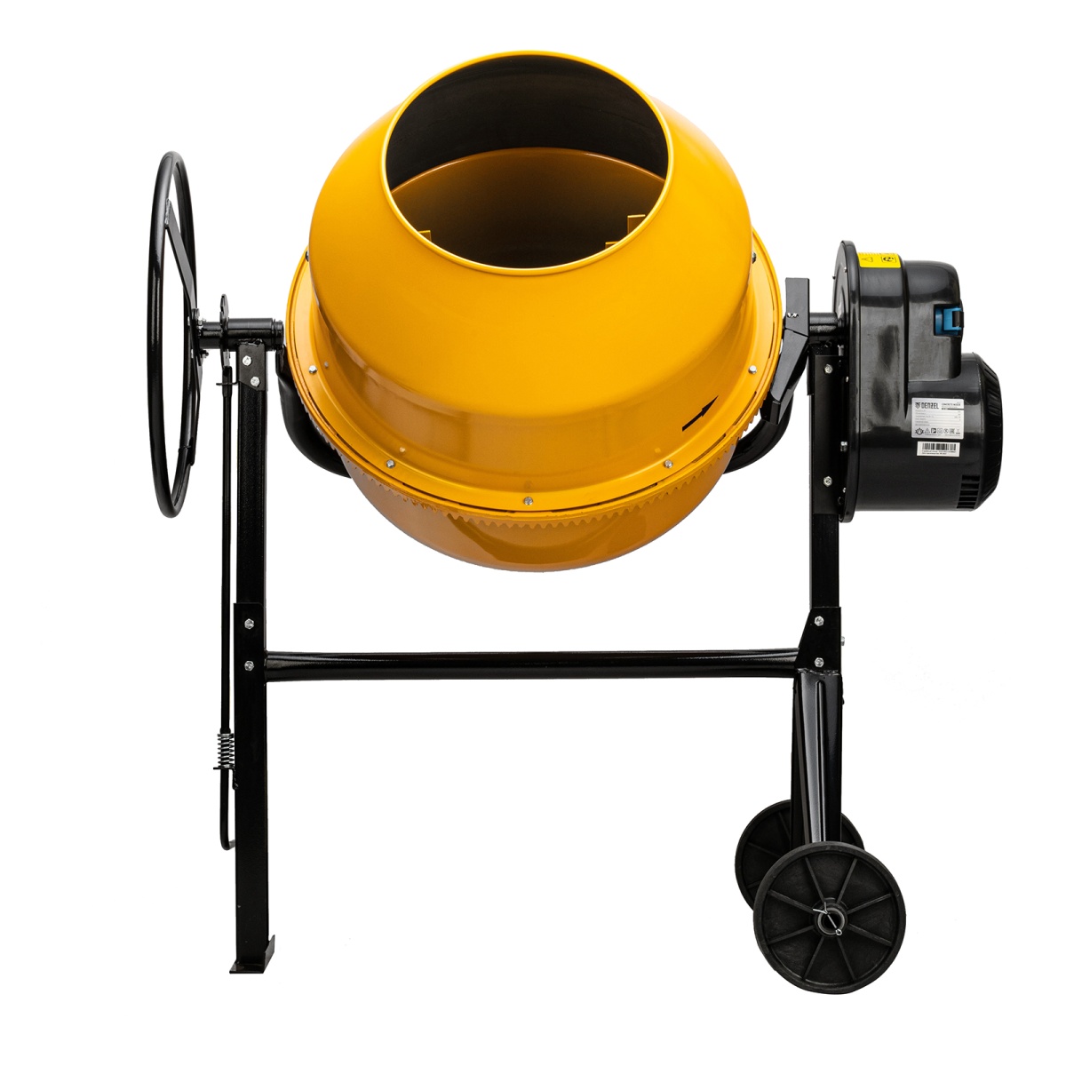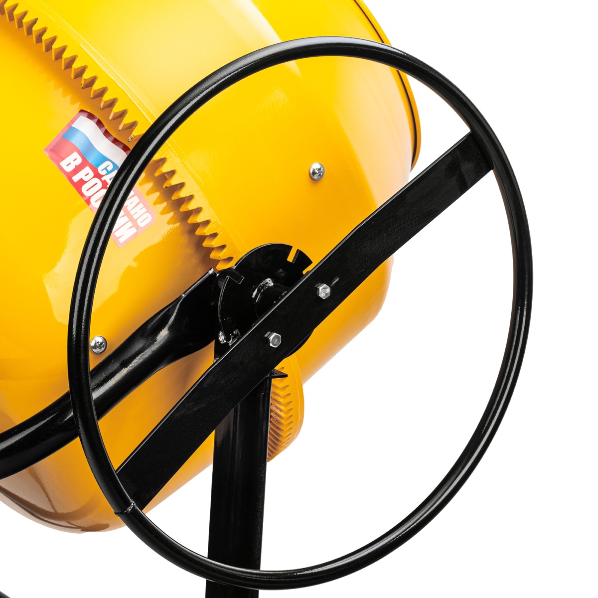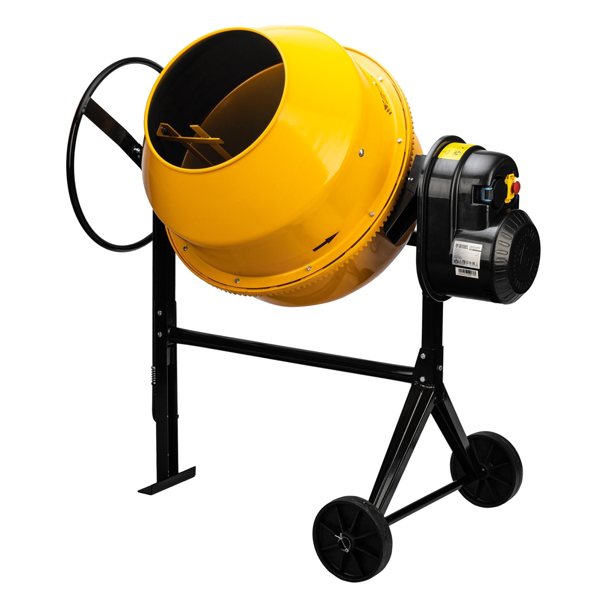 - Защита от перегрева — если неопытный пользователь перегрузит барабан, датчик термозащиты незамедлительно отключит питание, это позволит предотвратить повреждение обмотки двигателя.Долговечность — барабан выполнен из стальных листов увеличенной толщины (верх 1,5 мм / низ 2 мм) и покрыт порошковой краской для защиты от коррозии.Высокая металлоемкость конструкции — за счет применения усиленных узлов и элементов бетоносмеситель выдерживает повышенные нагрузки.Безопасная эксплуатация — ведущая шестерня закрыта широким защитным кожухом, предотвращающим затягивание посторонних предметов в привод.Прочность — шестерня и венец сделаны из чугуна, в конструкции венца нет ослабляющих сквозных отверстий, т.к. он крепится к барабану через проушины, вынесенные за его тело.Надежность и высокий ресурс — втулка, передающая вращение от вала непосредственно ведомому шкиву, произведена из прочной стали.Фиксация угла наклона барабана — в конструкции бетоносмесителя предусмотрена педаль, позволяющая фиксировать бак в нужном положении и дозировать выгрузку готовой смеси.Возможность экстренного выключения — при возникновении внештатной ситуации достаточно просто «стукнуть» по большой наружной кнопке, и работа двигателя моментально прекратится.II класс защиты от поражения электрическим током — устройство имеет двойную изоляцию токопроводящих элементов, что подтверждено сертификатом.Сниженный уровень шума 86 дБ — толщина венца увеличена, поэтому бетоносмеситель работает тише по сравнению с классическими моделями, также уменьшается уровень вибраций.Защита от коррозии — бак окрашен стойкой порошковой краской, она не стирается со временем и долго сохраняет первозданный вид.Простое обслуживание — узел крепления оси барабана легко разбирается, это значительно упрощает замену подшипников.Удобная транспортировка — колеса упрощают перемещение бетоносмесителя по строительной площадке.Степень защиты внутренних узлов IP44 — двигатель закрыт корпусом, кнопки управления — пластиковой крышкой, не допускающей попадания строительной пыли и влаги.Гарантия 3 года — высокое качество бетоносмесителя подтверждено производителем.