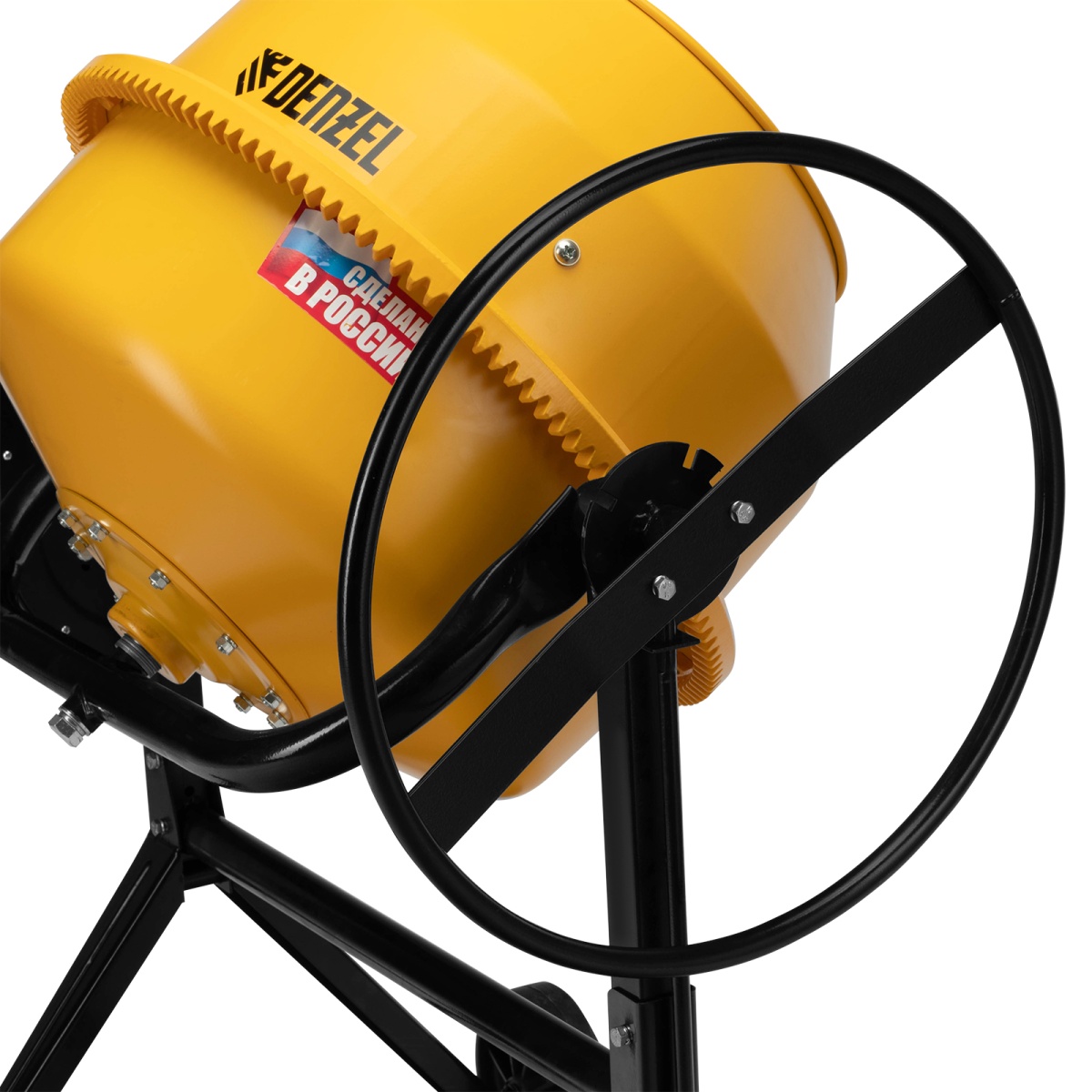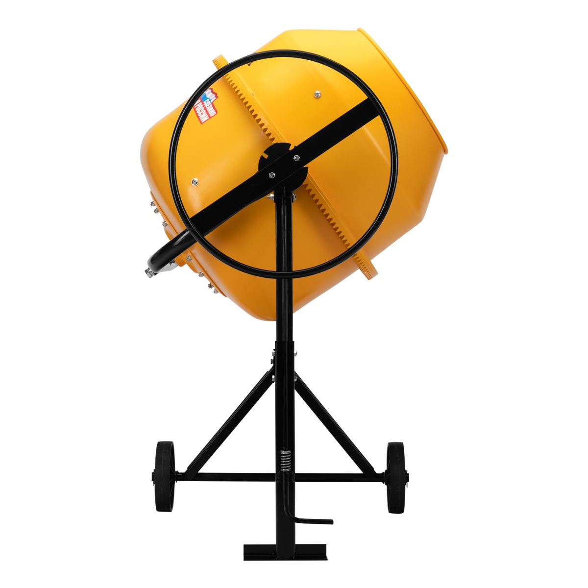 - Защита от перегрева — если неопытный пользователь перегрузит барабан, датчик термозащиты незамедлительно отключит питание, это позволит предотвратить повреждение обмотки двигателя.Долговечность — барабан выполнен из стальных листов увеличенной толщины (верх 1,5 мм / низ 2 мм) и покрыт порошковой краской для защиты от коррозии.Высокая металлоемкость конструкции — за счет применения усиленных узлов и элементов бетоносмеситель выдерживает повышенные нагрузки.Безопасная эксплуатация — ведущая шестерня закрыта широким защитным кожухом, предотвращающим затягивание посторонних предметов в привод.Прочность — шестерня и венец сделаны из чугуна, в конструкции венца нет ослабляющих сквозных отверстий, т.к. он крепится к барабану через проушины, вынесенные за его тело.Надежность и высокий ресурс — втулка, передающая вращение от вала непосредственно ведомому шкиву, произведена из прочной стали.Фиксация угла наклона барабана — в конструкции бетоносмесителя предусмотрена педаль, позволяющая фиксировать бак в нужном положении и дозировать выгрузку готовой смеси.Возможность экстренного выключения — при возникновении внештатной ситуации достаточно просто «стукнуть» по большой наружной кнопке, и работа двигателя моментально прекратится.II класс защиты от поражения электрическим током — устройство имеет двойную изоляцию токопроводящих элементов, что подтверждено сертификатом.Сниженный уровень шума 86 дБ — толщина венца увеличена, поэтому бетоносмеситель работает тише по сравнению с классическими моделями, также уменьшается уровень вибраций.Защита от коррозии — бак окрашен стойкой порошковой краской, она не стирается со временем и долго сохраняет первозданный вид.Простое обслуживание — узел крепления оси барабана легко разбирается, это значительно упрощает замену подшипников.Удобная транспортировка — колеса упрощают перемещение бетоносмесителя по строительной площадке.Степень защиты внутренних узлов IP44 — двигатель закрыт корпусом, кнопки управления — пластиковой крышкой, не допускающей попадания строительной пыли и влаги.Гарантия 3 года — высокое качество бетоносмесителя подтверждено производителем.