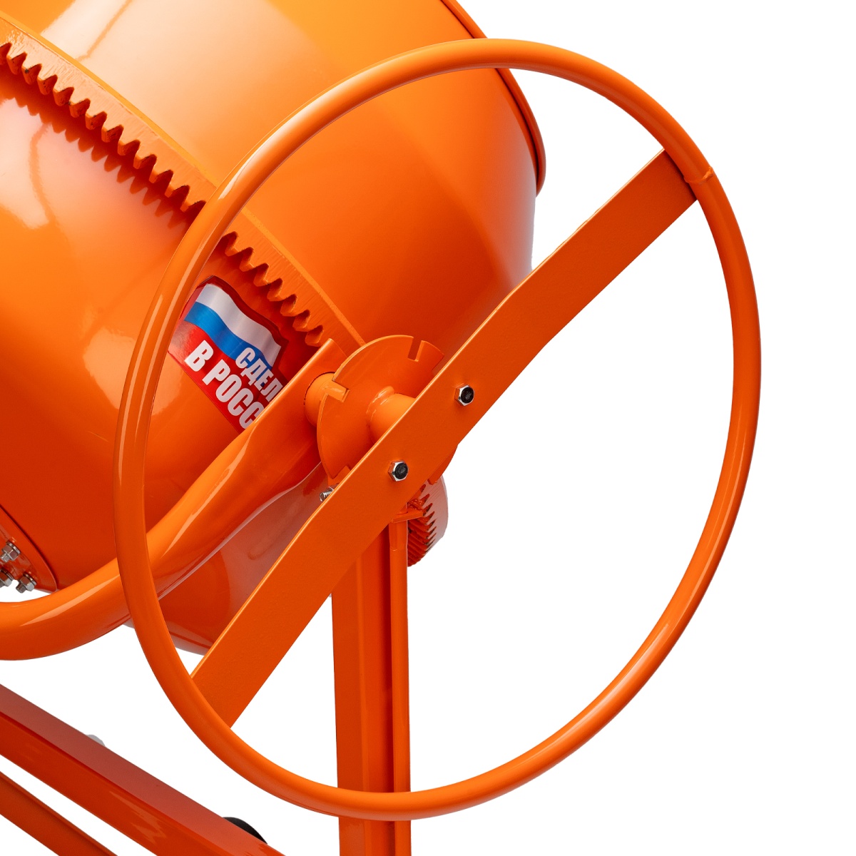 - Защитный кожух – пластиковый корпус закрывает работающий двигатель от повреждений, а оператора оберегает – от травм и ожогов.Влагозащитный кожух – кнопки управления закрыты от влаги, поэтому бетоносмеситель можно без риска поломок использовать при повышенной влажности.Эргономичный бак – нагрузка на сборочный узел снижена благодаря грушевидной форме барабана, а сами подшипники легко меняются, т.к. конструкция сделана разъемной.Прочная рама – стальные подкосы обеспечивают устойчивое положение работающего бетоносмесителя и придают опорной стойке жесткость, повышая ее ресурс.Удобный механизм наклона – барабан легко фиксируется в нужном положении, что упрощает загрузку компонентов и подачу готовой смеси.Надежные материалы – чугунный венец и стальная втулка ведомого шкива делают бетоносмеситель практичным и устойчивым к интенсивной эксплуатации.Разборная конструкция – барабан разбирается на 2 части, поэтому изделие удобно хранить и транспортировать.Увеличенные колеса – диаметр 20.5 см позволяет легко перевозить бетоносмеситель, независимо от условий на объекте.Защита электродвигателя от перегрева – электродвигатель оснащен тепловым выключателем, встроенным в обмотку, который защищает двигатель от перегрузки.