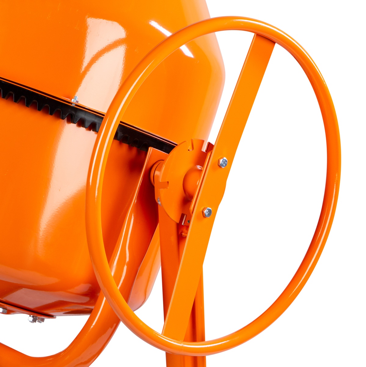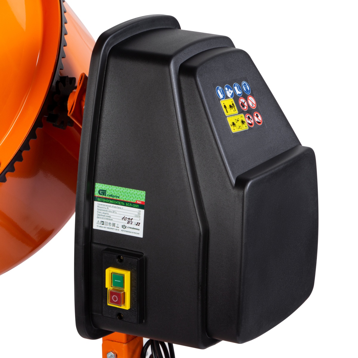 - Прочная опора — стальные подкосы придают раме жесткость и обеспечивают устойчивость даже при полной загрузке бака.Безопасность — пластиковый кожух защищает привод от механических повреждений и не допускает случайных прикосновений к работающему мотору.Защита электрокомпонентов — клавиши управления закрыты мягким прозрачным кожухом от попадания воды и строительной пыли.Устойчивость к максимальным нагрузкам — траверса крепится к раме с полным охватом осей, это делает бетоносмеситель.Легкая загрузка и разгрузка — барабан фиксируется в нужном положении благодаря удобной ножной педали.Быстрая подготовка к работе — бак с траверсой собраны в единый узел на заводе, поэтому не нужно тратить время на их сборку и зацепление венца с ведущей шестерней.Износостойкость — полиамидный венец выдерживает высокие нагрузки и не доставляет неудобства пользователю благодаря низкому уровню шума.Надежнось — втулка ведомого шкива, передающая ему вращение, изготовлена из прочной стали.Разборная конструкция — барабан выполнен из двух частей, что облегчает его транспортировку и хранение.Ремонтопригодные детали — подшипники расположены в теле барабана между двумя съемными крышками и при необходимости легко меняются на новые.Удобная транспортировка — колеса диаметром 20,5 см повышают маневренность бетоносмесителя и помогают без лишних усилий доставить его в нужное место.