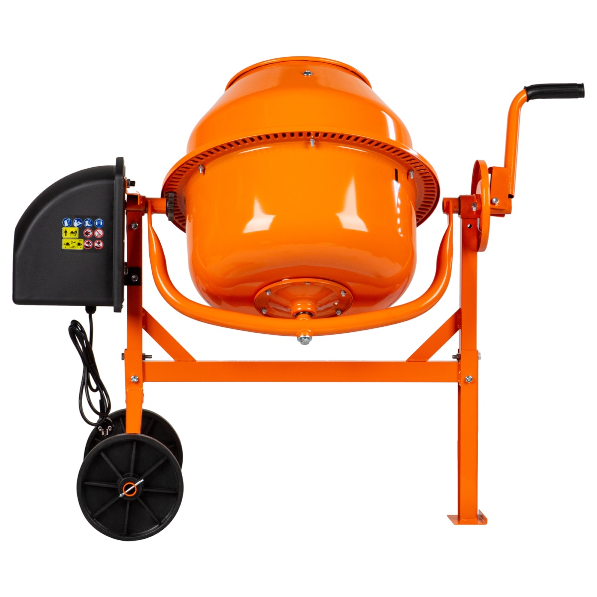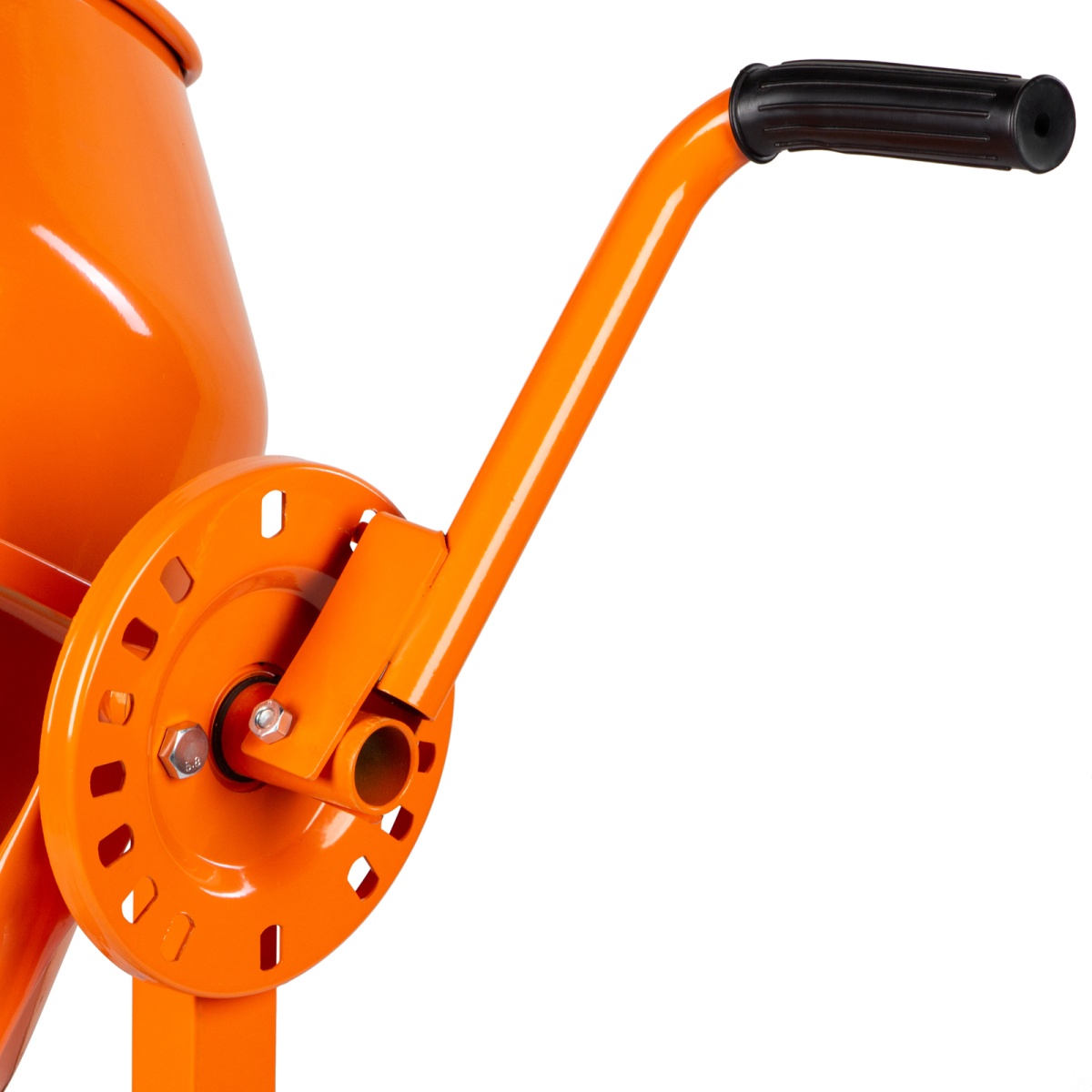 Малый размер барабана позволяет использовать устройство в небольших помещениях, без труда перемещая его в нужное место. При максимально допустимом заполнении на выходе получится до 40 л готовой смеси. Венец из прочной перфорированной стали выдерживает несколько рабочих циклов с небольшими перерывами, что позволяет ускорить процесс работы.