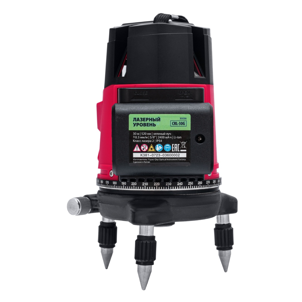 Лазерный уровень MTX CRL-30G 35036 с резьбой 5/8″ под штатив, в комплекте с батарейками, проецирует на поверхность 1 горизонтальный, 4 вертикальных луча зеленого цвета и точку отвеса дальностью до 30 м. Подходит для бытового применения в помещениях. Погрешность измерений составляет всего ±1,5 мм 5 м.