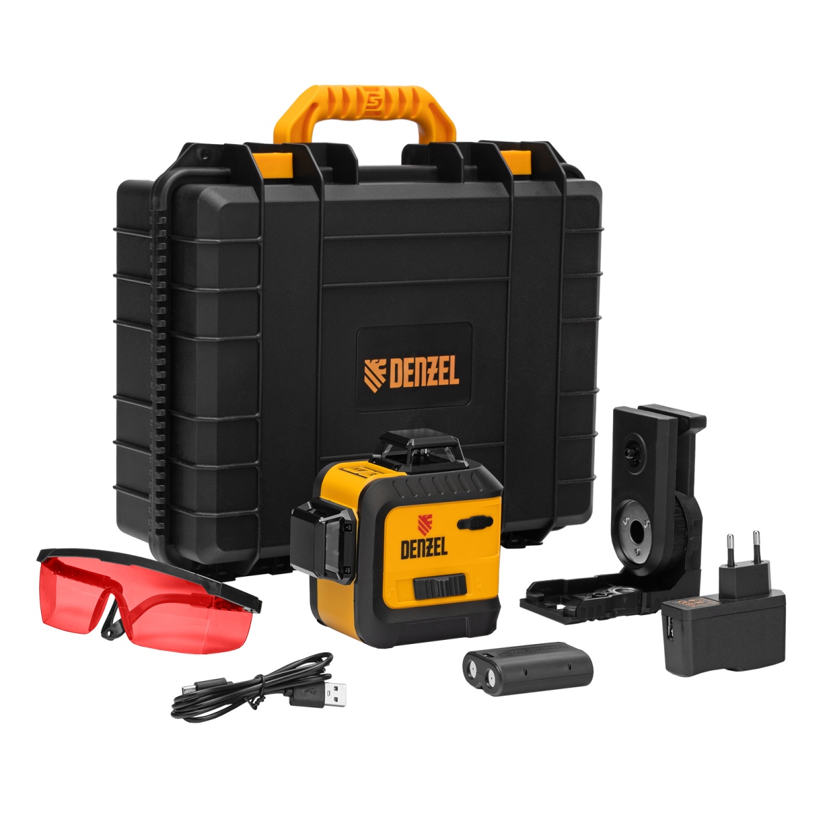 Лазерный уровень Denzel LX 360-3 Red 35077 используется для разметки поверхностей в ходе строительных и отделочных работ.
