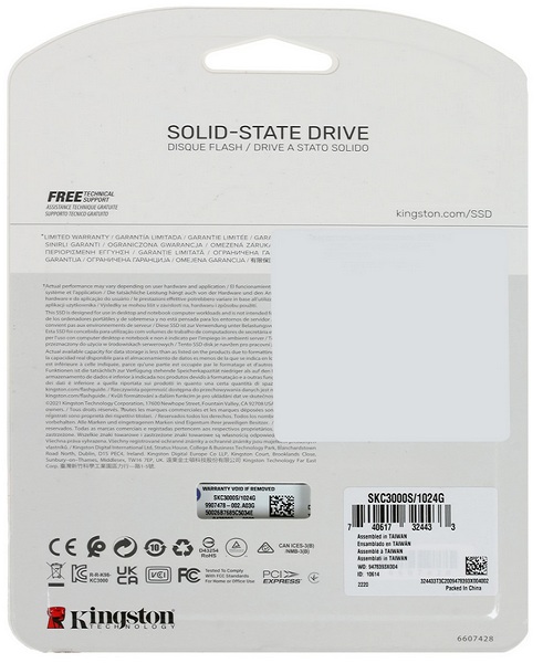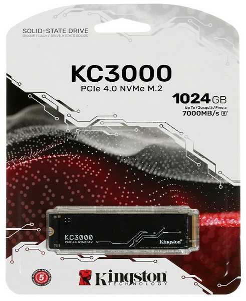 Накопитель SSD Kingston 1Tb KC3000 M.2 2280 PCI-E Gen4.0 x4, NVMe, R/W 7000/600MB/s, 800TBW, RTL (SKC3000S/1024G)