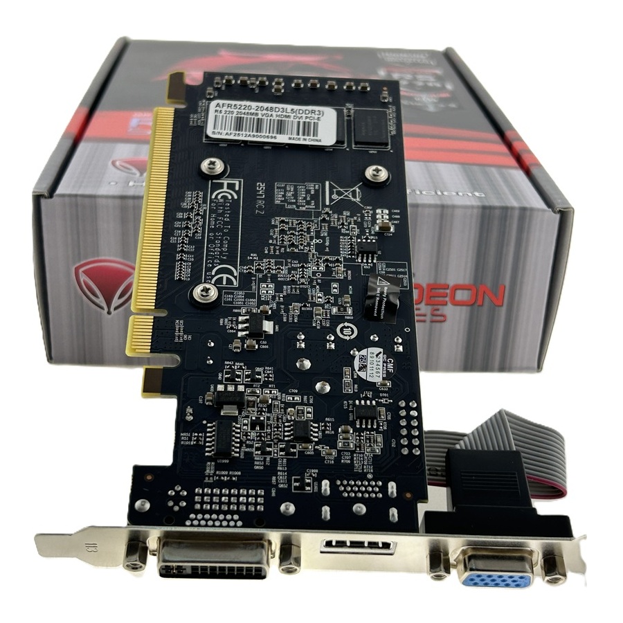 Видеокарта AFOX Radeon R5 220 2GB GDDR3 1FAN LP (AFR5220-2048D3L5) — видеокарта начального уровня, которая ориентирована на аудио и видео высокой четкости, развлечения, работу с документами, работу в офисе и школе, а также подходит для повседневного использования и некоторых обычных игр.