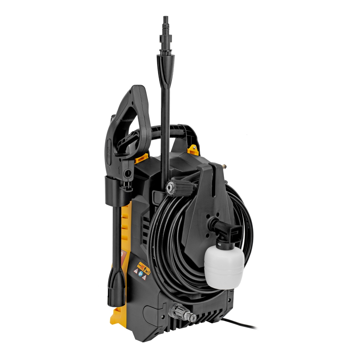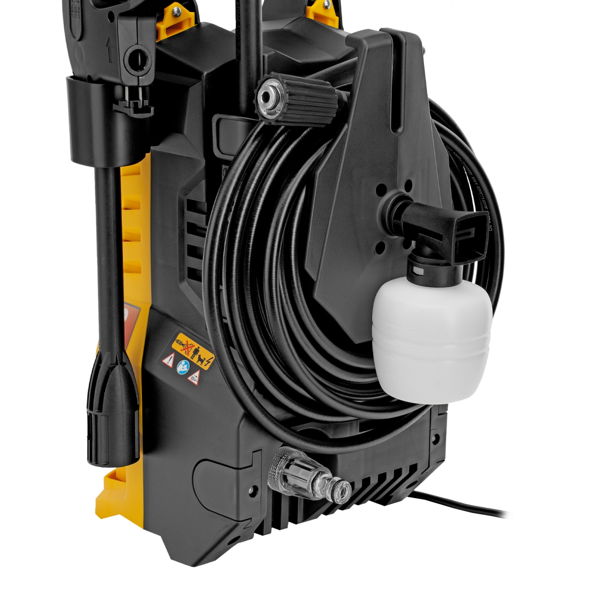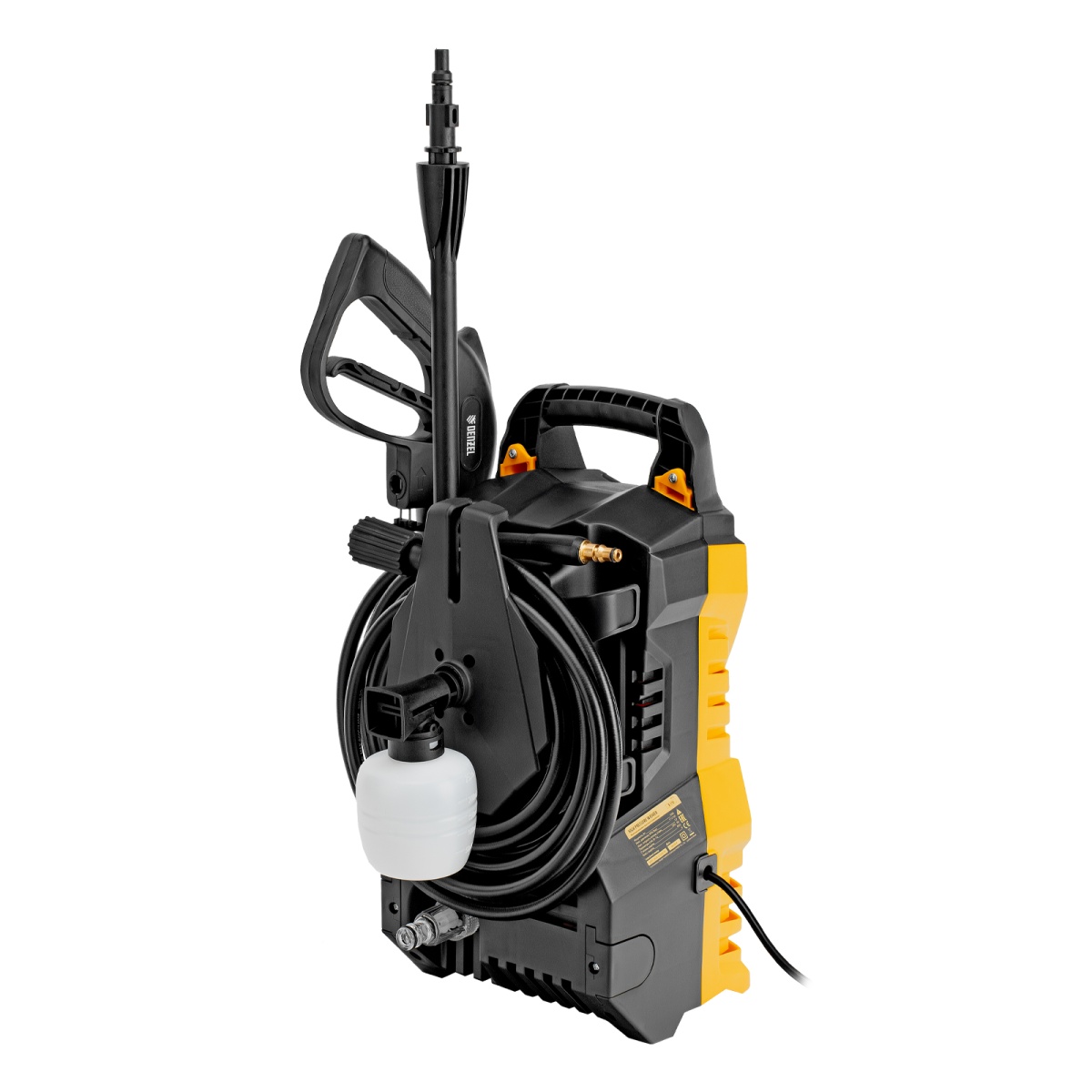 - Эффективная работа — входящий в комплект пеногенератор позволяет использовать моющие средства для очистки поверхностей;