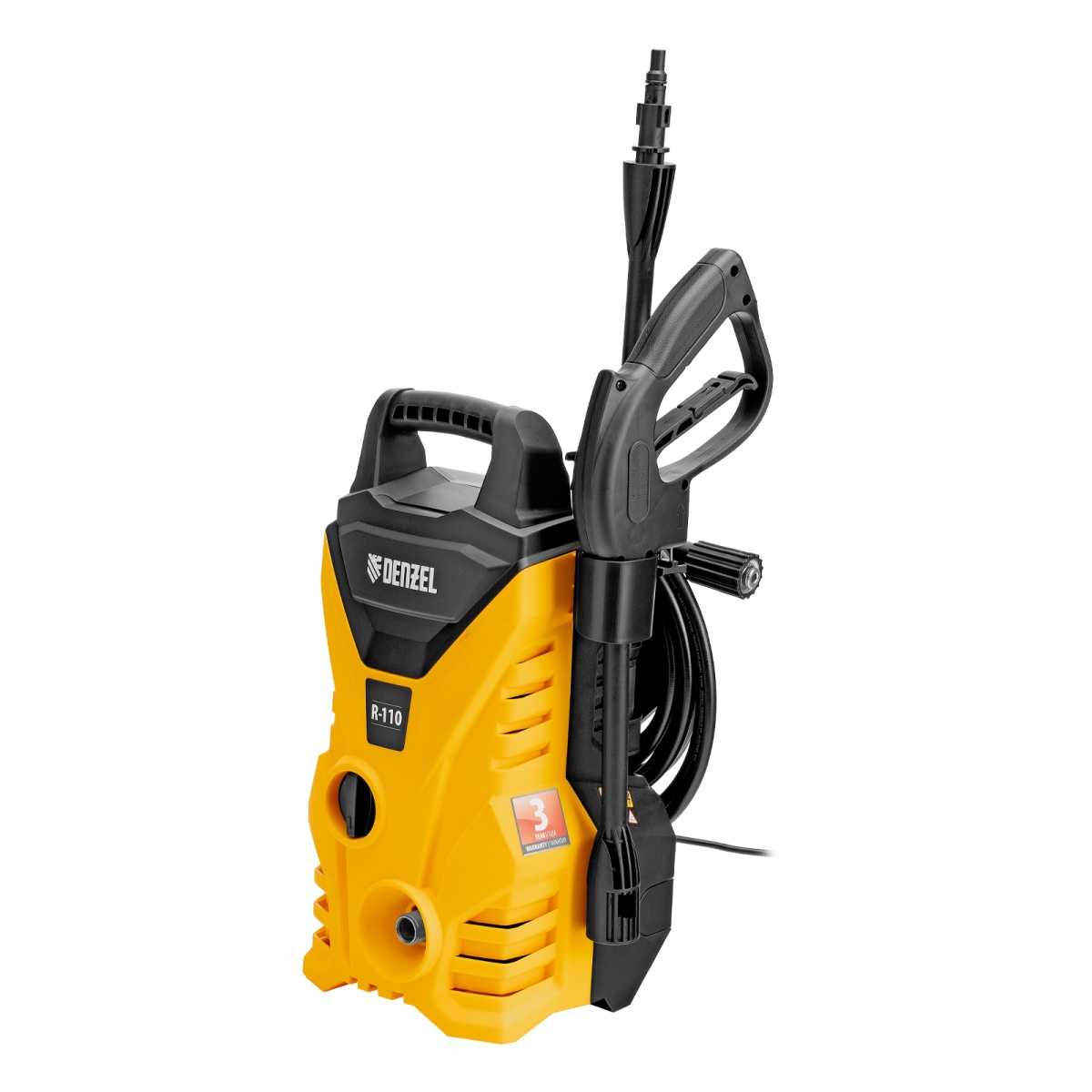 Мойка Denzel R-110 c мощным мотором и помпой высокой производительности позволяют быстро справляться даже с серьезными загрязнениями. Если нет доступа к водопроводу, мойка может осуществлять забор воды из резервуара в режиме самовсасывания, теряя при этом всего 5% давления.