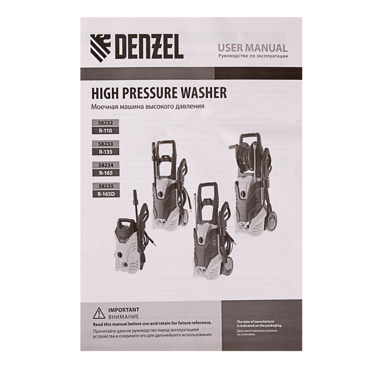 Мойка Denzel R-165D с мощным мотором и помпой высокой производительности позволяют быстро справляться даже с серьезными загрязнениями. Если нет доступа к водопроводу, мойка может осуществлять забор воды из резервуара в режиме самовсасывания, теряя при этом всего 5% давления.
