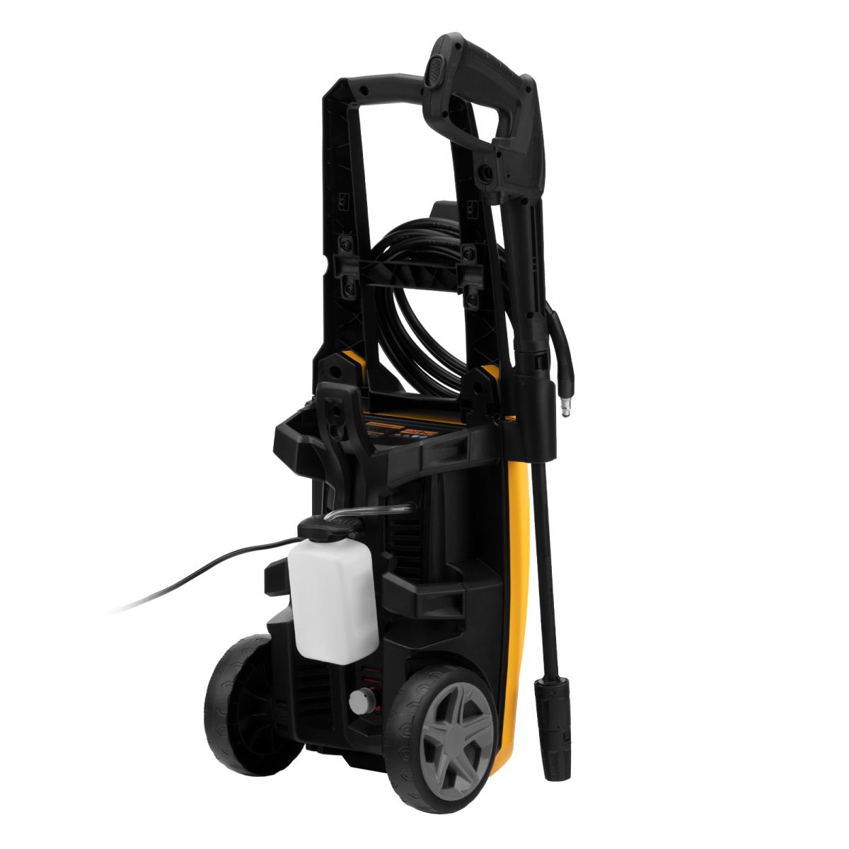 - Длина шланга и кабеля 5 м — не нужно часто перемещать машину, можно работать на удалении от розетки;