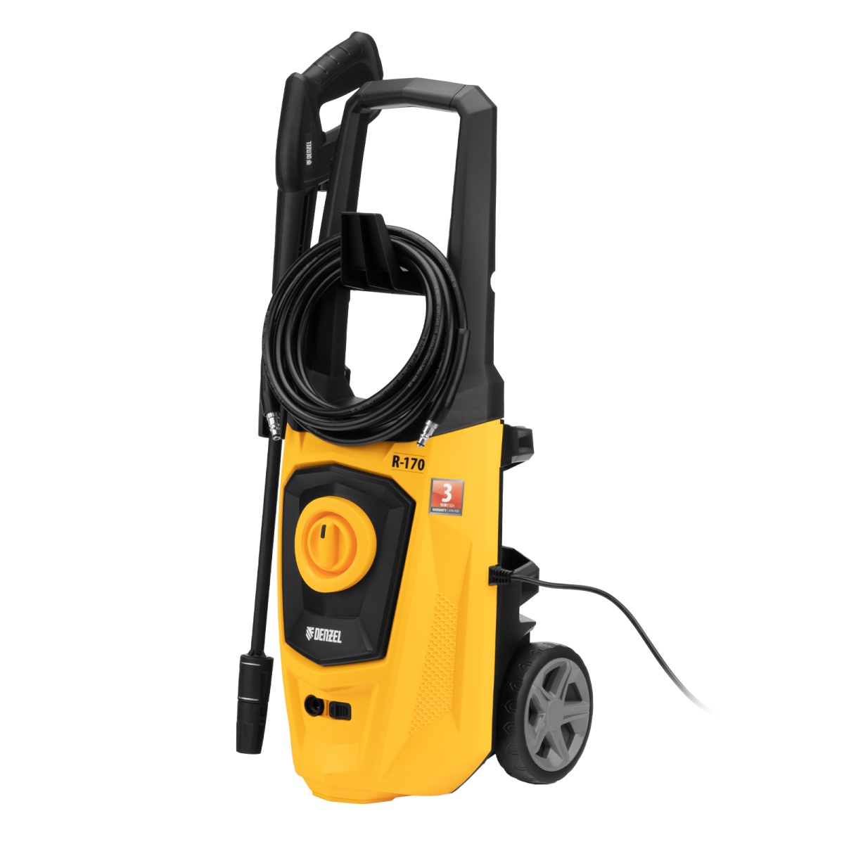 Мойка Denzel R-170 позволяет быстро удалить загрязнения с кузова автомобиля, мотоцикла, велосипеда, садового и хозяйственного инвентаря, очистить садовую дорожку и террасу, а также стены и окна строений.