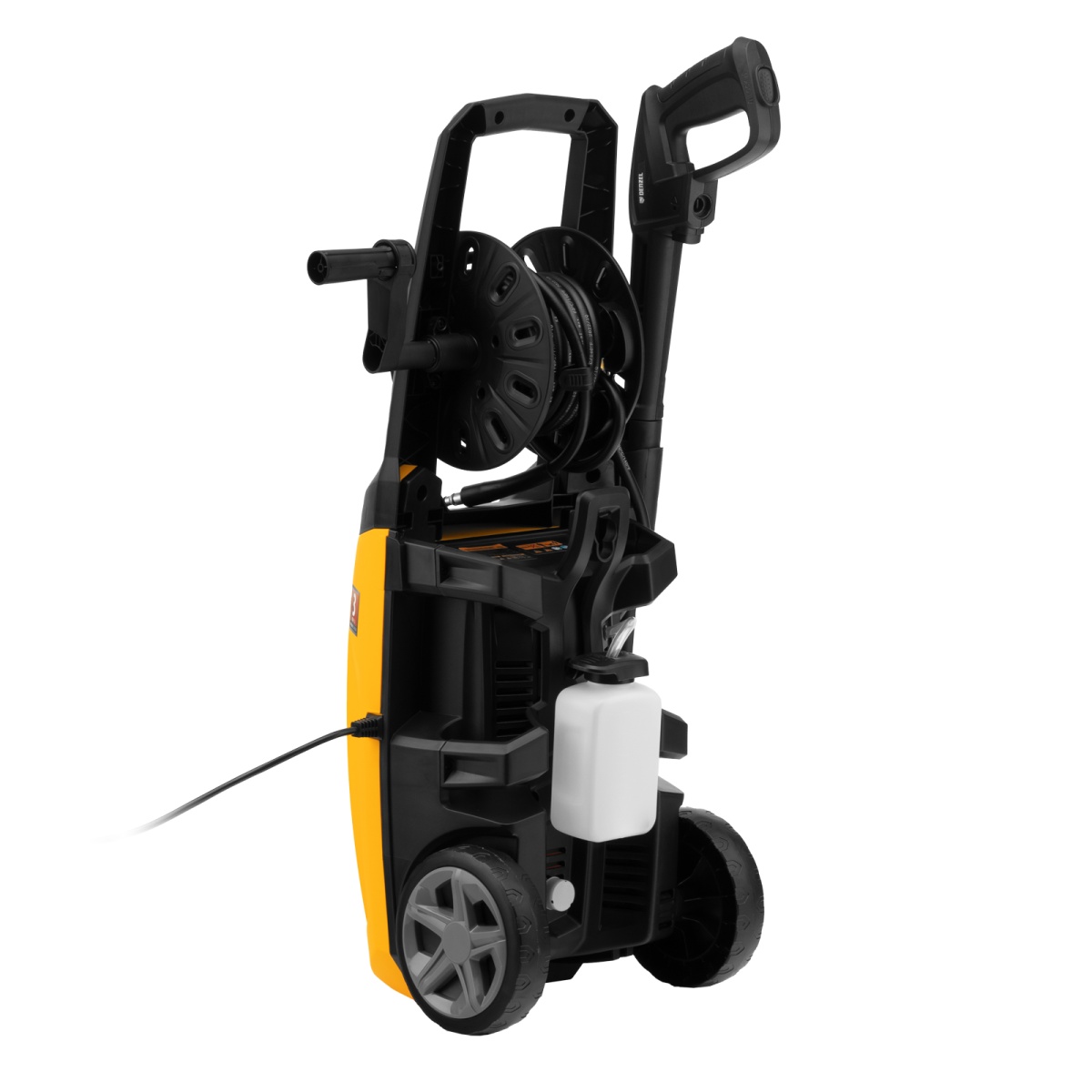 - Длина шланга и кабеля 5 м — не нужно часто перемещать машину, можно работать на удалении от розетки.