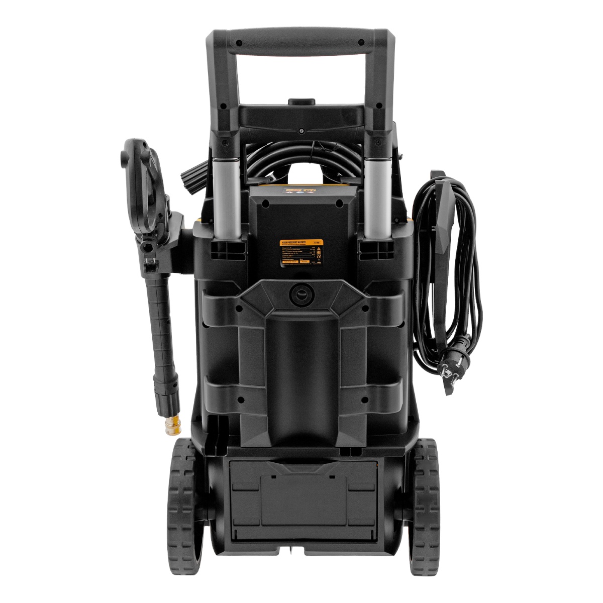 - Мобильность — колеса и телескопическая ручка позволяют легко перемещать мойку во время работы;